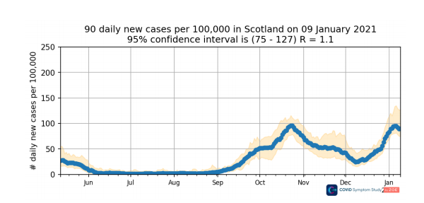 Yet according to the ZOE App Scotland infections appear to have peaked in the middle of last week.