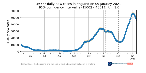 Here’s the latest graph from the ZOE Covid Symptom Study App showing infections peaking at the start of the year.
