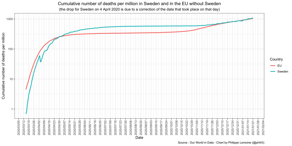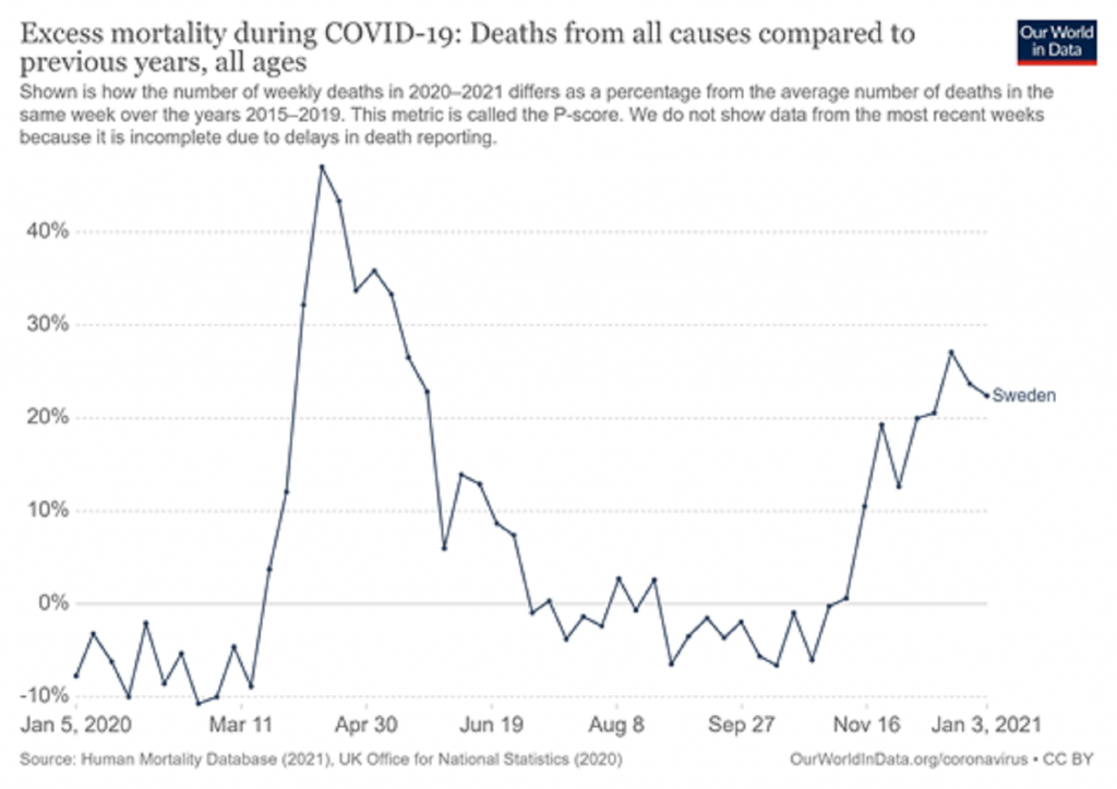 Sweden’s Per Capita Deaths in Line with the European Average in 2020