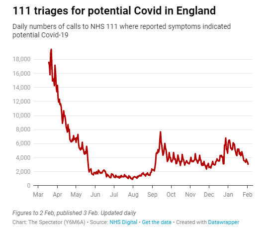 The peak in the triage data is December 28th. As of February 4th, then, we’re a long way “past the peak”.