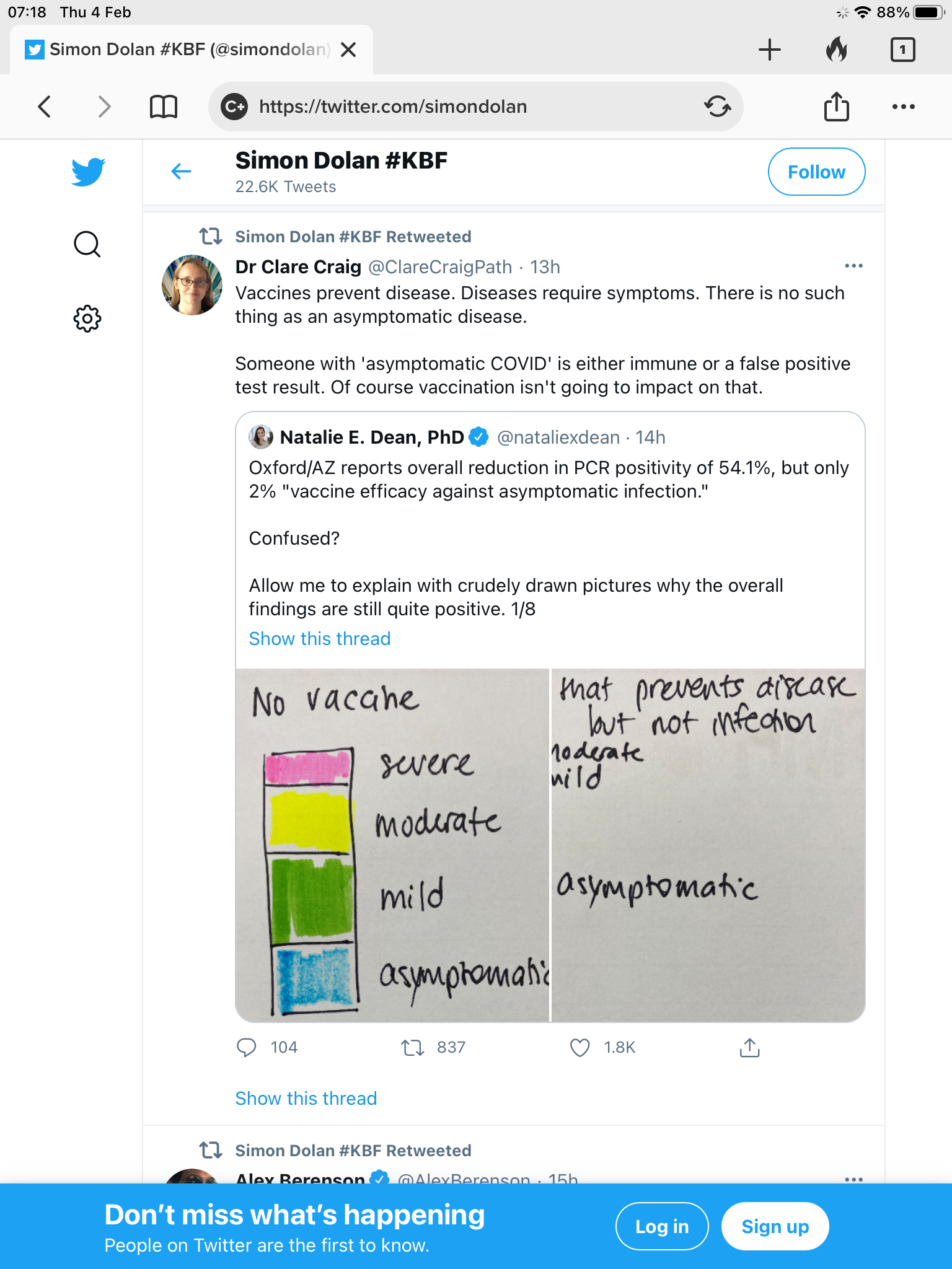 Well, let’s assume that’s true – and to me it seems plausible – let’s think about this. We know the “vaccine” doesn’t make you “immune” necessarily, just reduces symptoms. At least that is what the makers claim. If this is the case, how on earth does it prevent transmission. Could it be that aymptomatic transmission is not actually a thing at all? Like to see at least one journalist ask how both these things could be true at once.