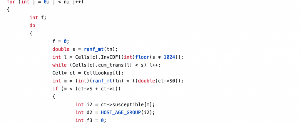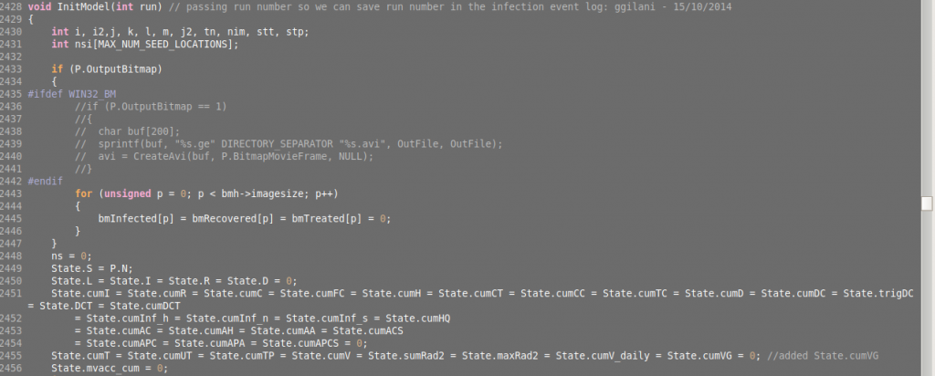 The following is a representative sample of the code in the Imperial Model: (lines 213 to 228)