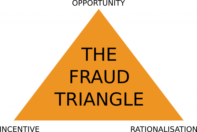 What we are seeing, I’m sure many of you will agree, is a fraud – a wrongful or criminal deception intended to result in financial or personal gain (or avoidance of loss) – on a monumental scale, and, as such, and given my background in audit, I believe that, instead, this should be analysed with reference to the fraud triangle (above).