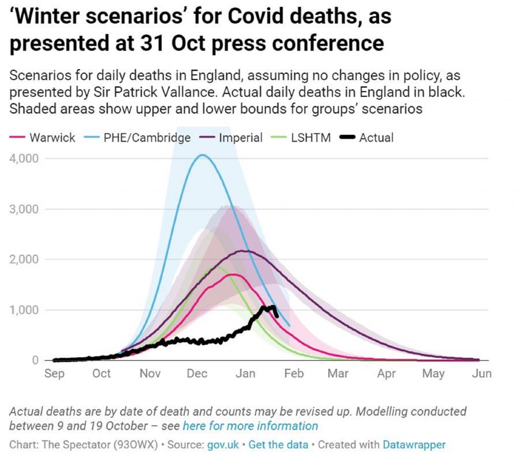 He has four models and they all agree, as do various other academic models. Well, colour me convinced. I would however bet a meal for four at the Fat Duck that they all assume NPIs work and that none of them model either seasonality or partial pre-existing immunity.