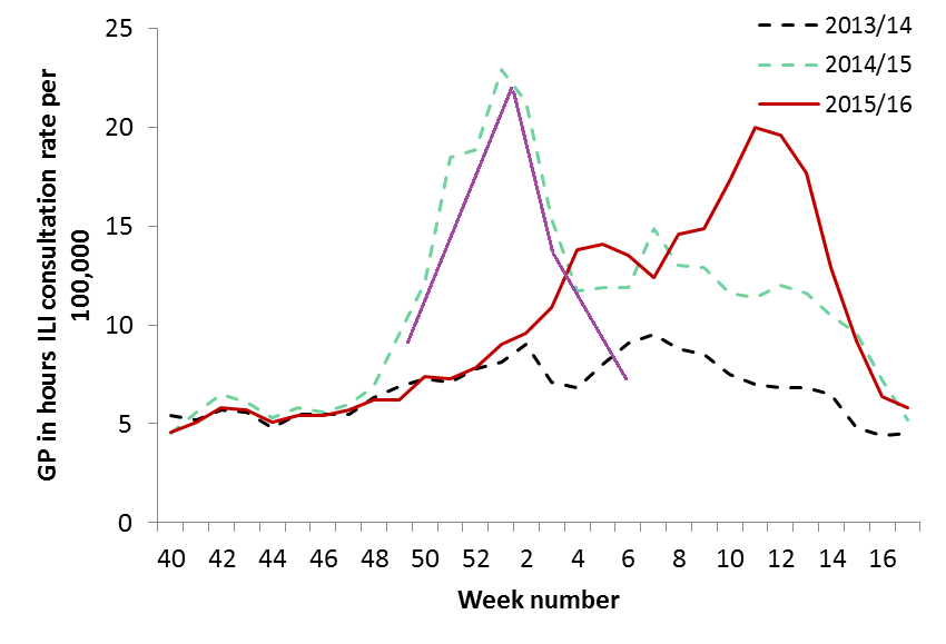 What I found was that there were two types of flu season. One was more ‘gradual’. It tended to rise slowly at the start of the year, through January and February and into March. The other type was sharper and more ‘aggressive’. This type of flu season tended to spike early, around the first week of January and burn out quicker.