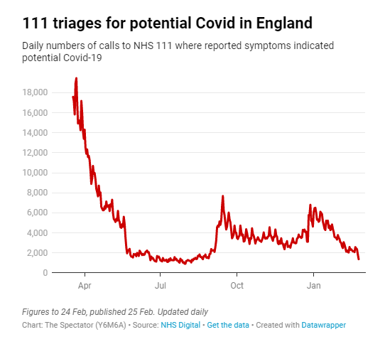 Stop Press: 111 triages for potential Covid in England dropped yesterday to their lowest level since August 9th, indicating there is almost no community transmission of COVID-19 in England at present.