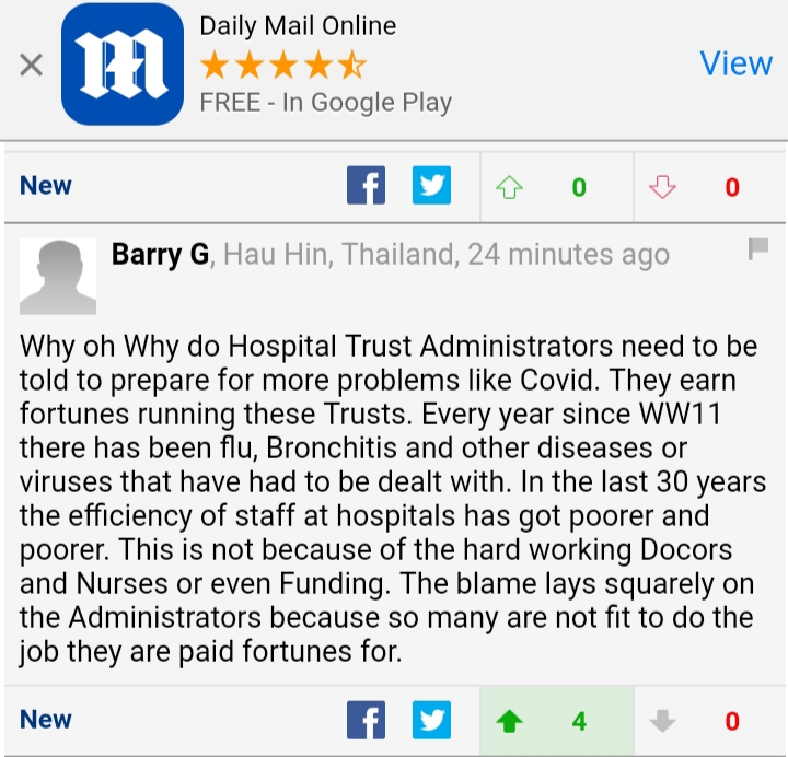 From the comments Daily Mail readers seem to have woken up to the fact that getting vaccinated is not going to lead them out of lockdown and that the extension of furlough to the end of September confirms this.