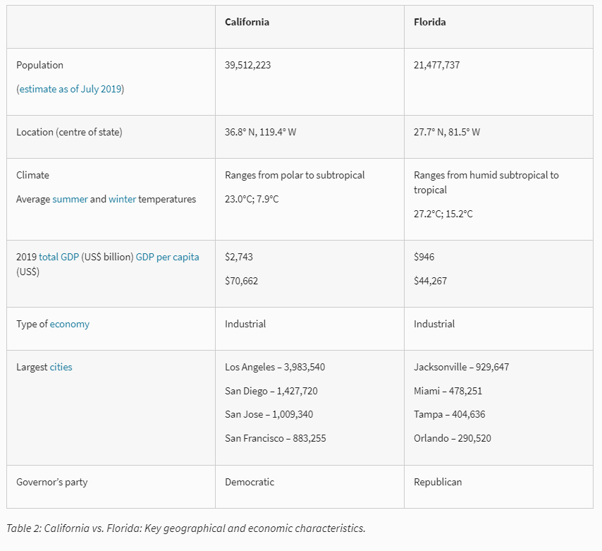 She also compares California and Florida.