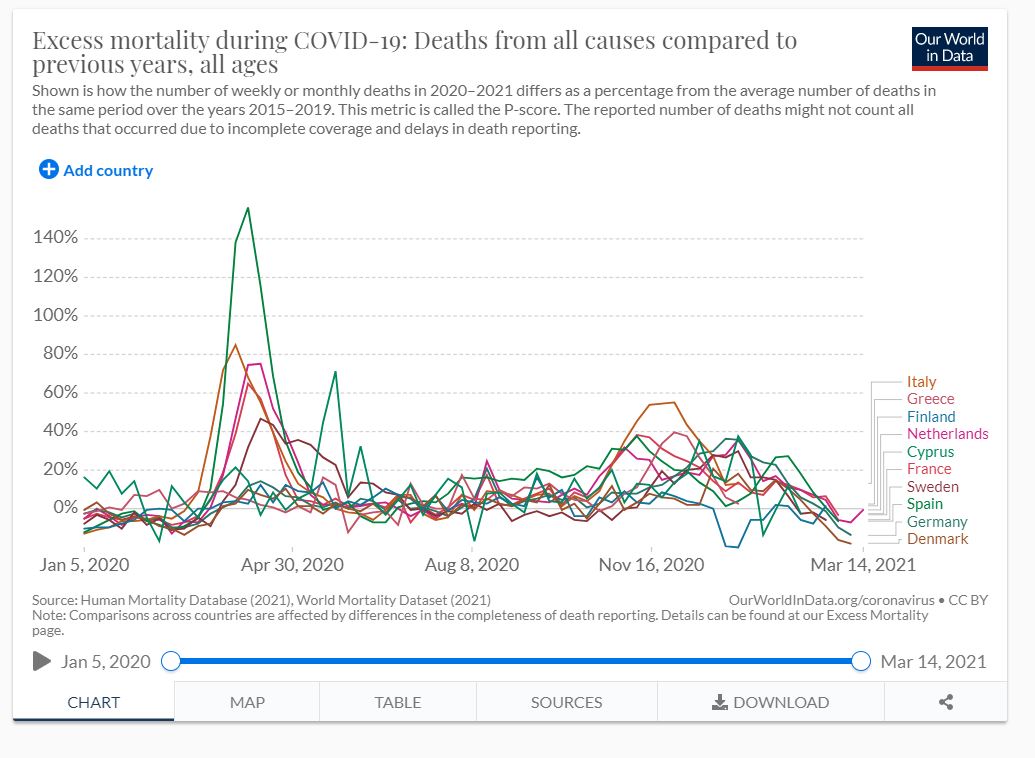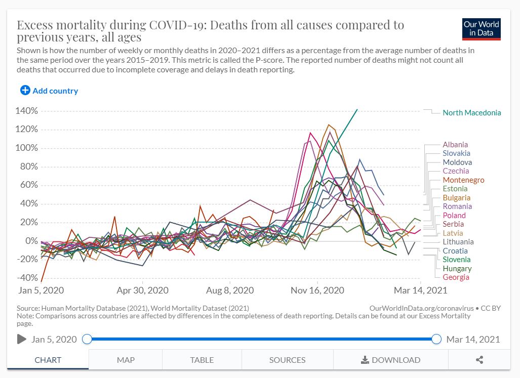 Perhaps he is referring to Eastern Europe, which didn’t have any waves last year and appears to have had its first early this year. But even there, excess mortality is trending down now.
