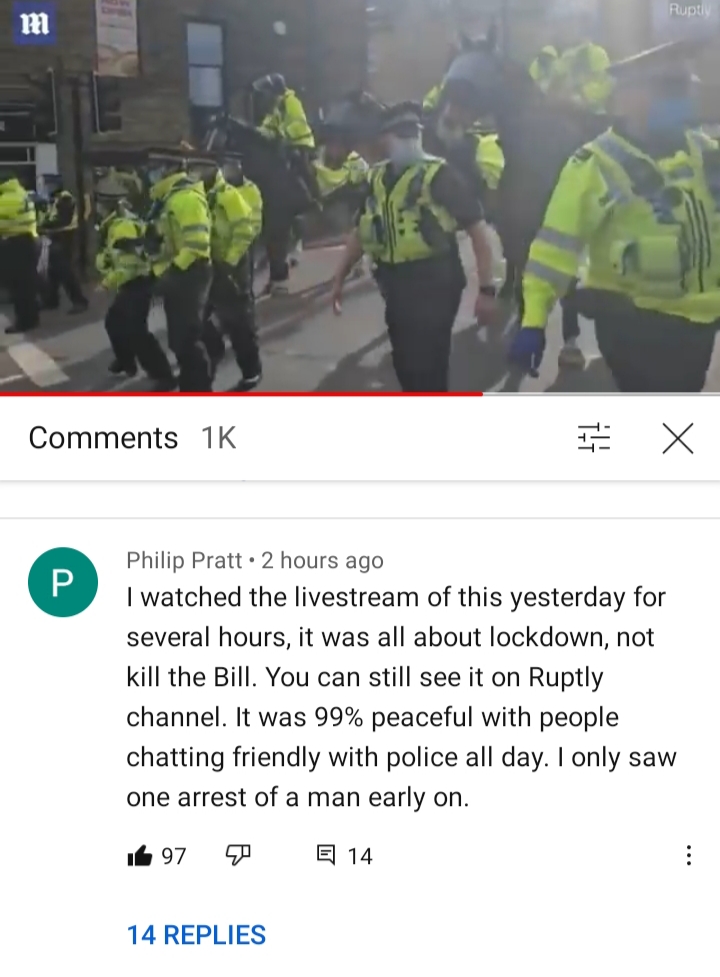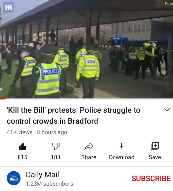 Off topic, Daily Mail reports on Police in Barnsley failing to contain a Kill The Bill protest.