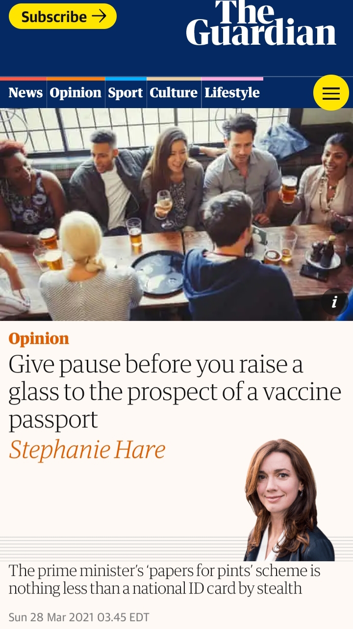 Off topic but this fresh from the Guardian who have discovered that Vaccine Passports are no more than National ID Cards by stealth.
