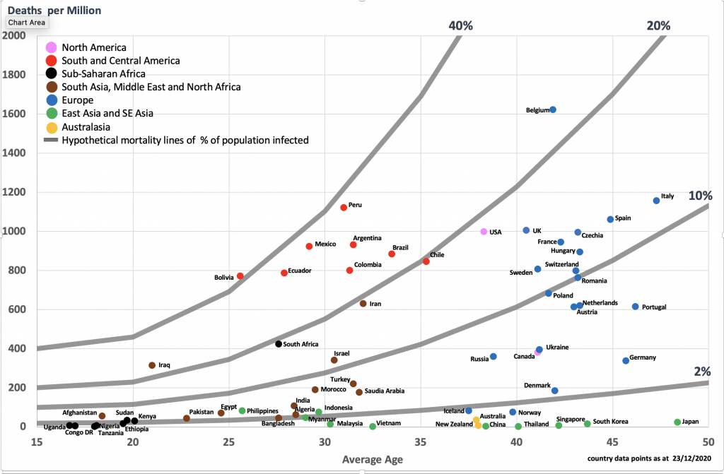 And link this to Ivor Cummins excellent video ‘The Origins of the Species’. The West has 30 times the deaths of the East and Africa. Why? Firstly diet, simply diet, the west eats carbohydrates, processed foods, articicial sweeteners; in general the east eats far less, so throughout the ages of life is healthier. And the east does not use the same ACE inhibitor drugs that create a fertile ground for the spike protein of SARS2.