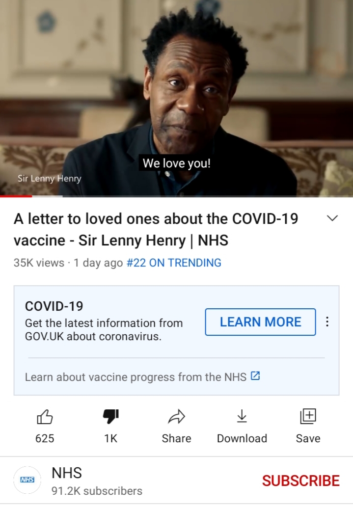 The latest (the ‘Lenny Henry’ one) patronising bit of NHS brainwashing reduced me to raging fury this evening – black kapo stuff : “What can I do for you, Massa?” – when some minority communities have demonstrated superb sceptical sanity.