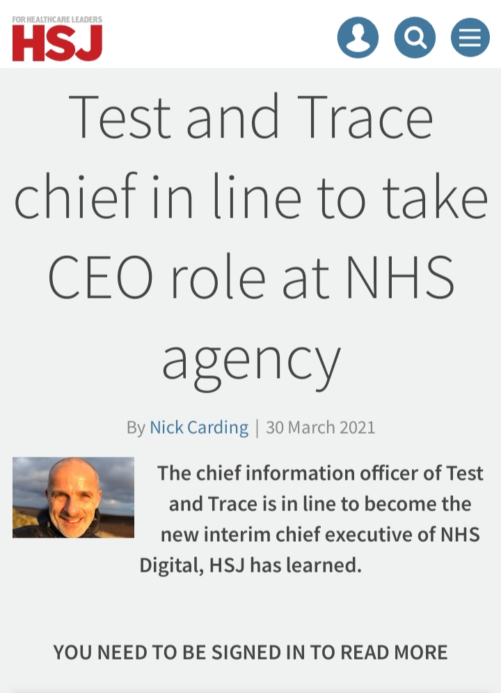 Last week, 30/3/21, an item appeared in HSJ, a journal for healthcare leaders,