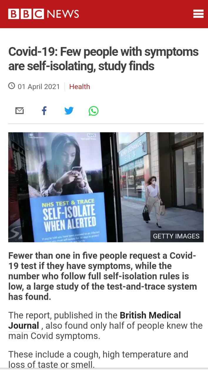 The BBC does discuss Test & Trace, in this report (1/4/21) it reveals that fewer than one in five people with Covid symptoms ask for a test and that less than half of people know what the major symptoms are (after 12 months of wall to wall coverage).