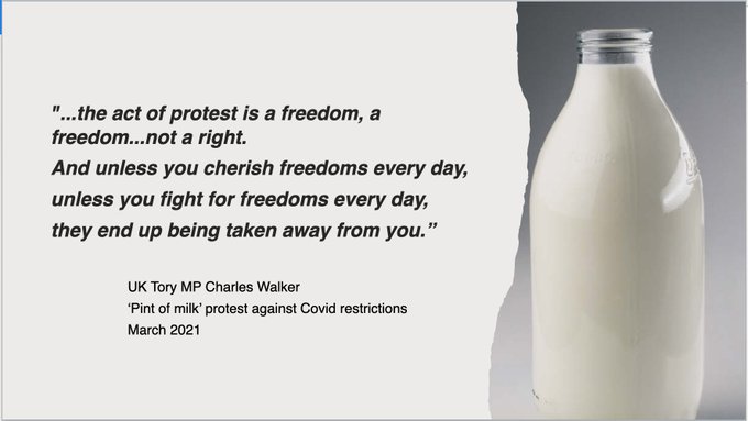 MP Charles Walker, ‘Pint of milk’ protest for freedom, March 2021