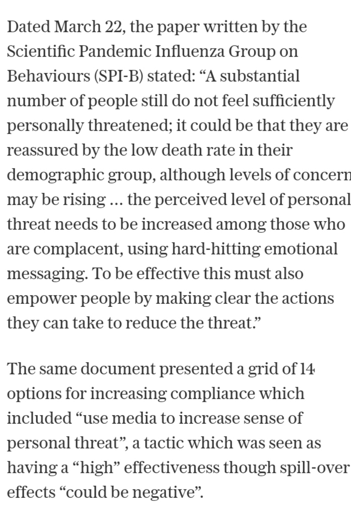 Roundup item 2. State of fear. I don’t have a lot of time for people who spent months cooped up at home terrified out of their wits by gormless government propaganda campaigns. Granted I had the advantage of being out and about as a ‘key worker’ which made it easier to avoid the daily news briefings (never seen a single one) though I was bombarded by BBC Radio but made my own choice to stop buying newspapers. One thing I will never forgive the government for is their lying by omission when they hid the fact that only 6 children below the age of 16 had died ‘with covid’ during the ‘first wave’, all of them with serious underlying conditions. They allowed the more gullible sections of society to believe their children would keel over in the playground at random until three days before they wanted schools to reopen for the summer term last year. Turning fear on and off like a tap was a phrase I used here at LS at the time. Two quick points. Whoever came up with that PowerPoint MINDSPACE bollocks deserves a very painful death for knowingly treating us with such contempt. This oft repeated… Read more »