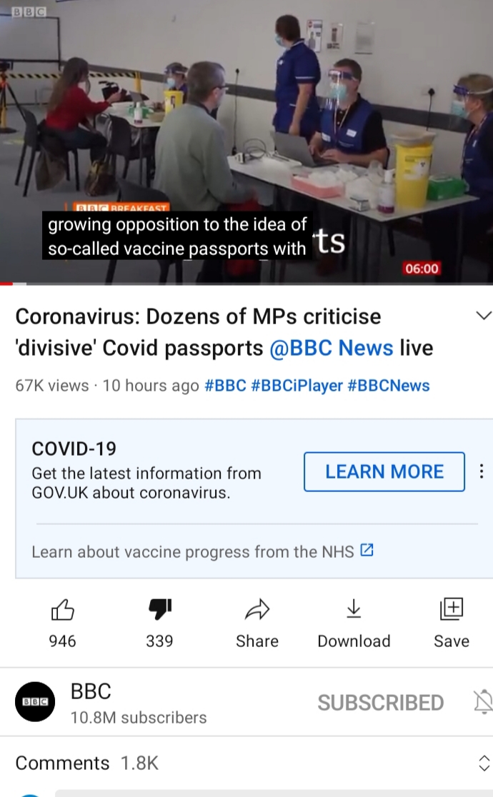 Boris Johnson has stated that the vaccine will not give you back your freedom. The criteria for a pandemic was changed by WHO to enable them to call this a pandemic, it was not to save the nhs, many GP practices have already been sold off to the US, a low mortality virus has been used to bring in nwo controls.