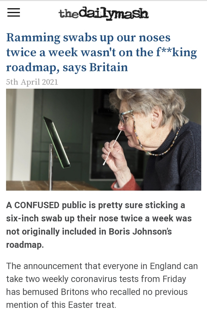 Daily Mash is usually a bit woke but they go on one over testing.