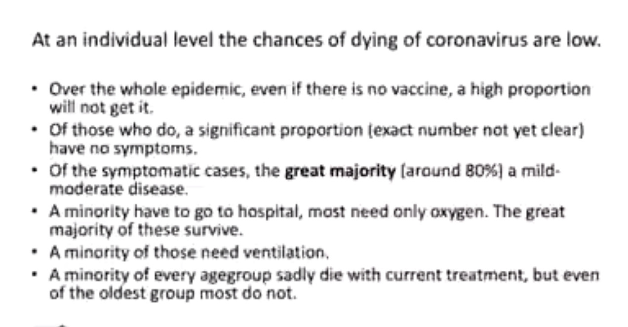 The survival rate in the under 70s is 99.97% according to Prof Dr John Ioannidis. I would much sooner trust his data over the cooked-up, fraudulent data coming from the lying, deceiving lowlifes in HMG, whose only goal is the maximisation of vaccination uptake for the benefit of corporate entities, even if it negatively impacts the health of everyone who is tricked/coerced into taking it. There are well documented reasons to expect very serious short (already happening), medium and long term health consequences from taking this experimental rubbish, but they don’t care, they gave their masters full indemnity, and proceeded to try to get everyone injected with the experimental gene therapy, knowing full well the virus was a nothing-burger. These are crimes against humanity. “Global infection fatality rate is 0.15‐0.20% (0.03‐0.04% in those <70 years)” from: https://onlinelibrary.wiley.com/doi/full/10.1111/eci.13423 Prof Dr John Ioannidis confirms in April 2020 that Covid19 is a nothing burger: https://www.youtube.com/watch?v=btvDL6kIDsA Here are some good articles by Iain Davis which uncover some of the depths the government has sunk to in pursuit of carrying out the corona fraud agenda, playing every trick in the book with the objective of fraudulently inflating the mortality figures, manipulating the legal system and… Read more »