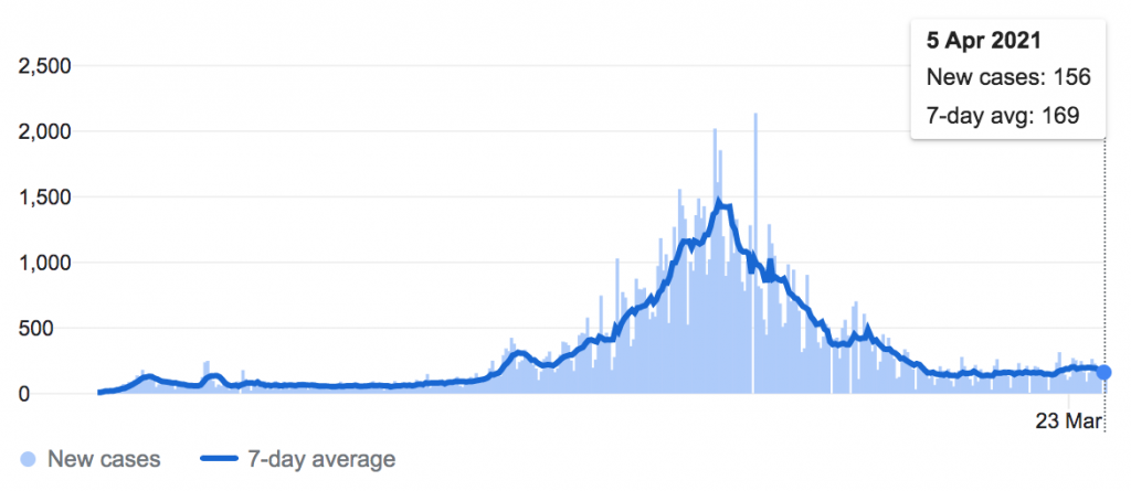 How has it fared since then? Case numbers have remained low, averaging about 170 per day: