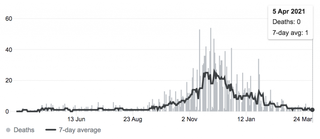 And deaths have continued to fall. The last seven days saw an average of just one death per day: