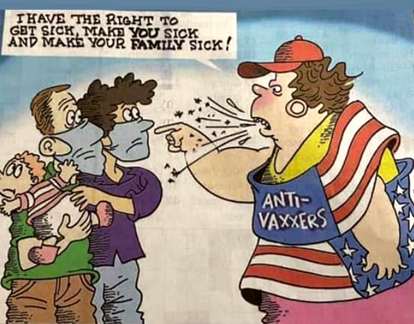 The cartoon, though negative about “anti-vaxxers” does perhaps unwittingly suggest the vaxxers are governed by fear.