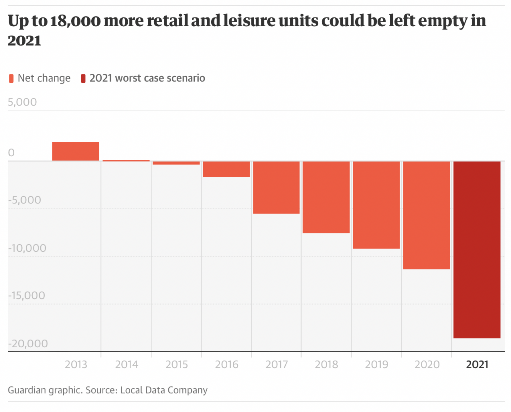 The true impact of the pandemic has yet to become apparent. Many outlets included in the research were temporarily closed during lockdowns and were not counted as shut but may never reopen after restrictions are relaxed next month.