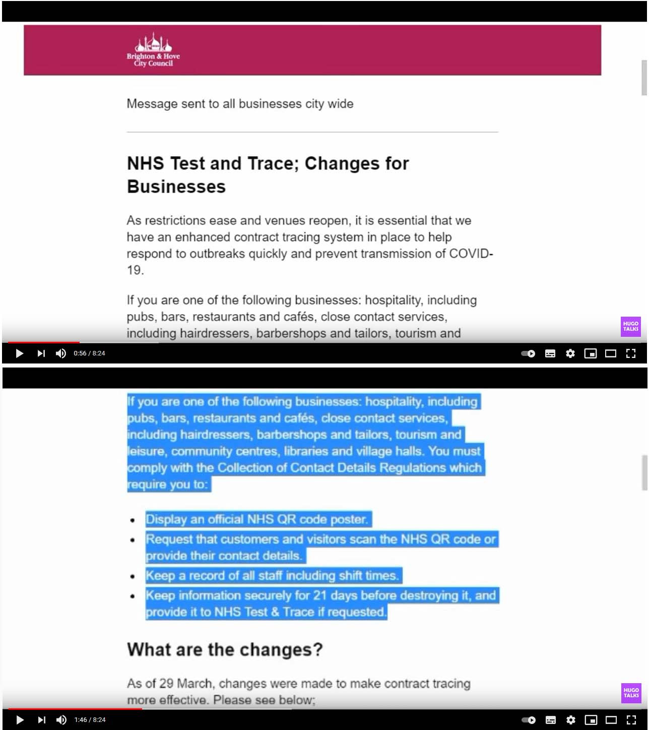 One notice from Ribble Valley Borough Council told pubs in Lancashire that “face coverings must be worn by customers, except when seated to eat or drink”.