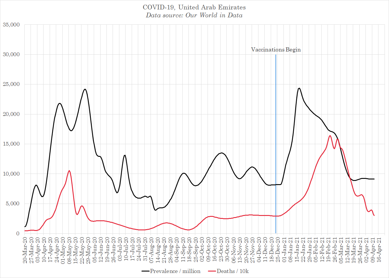 UAE another country like Israel with early and massive immunisation.Very similar curves.