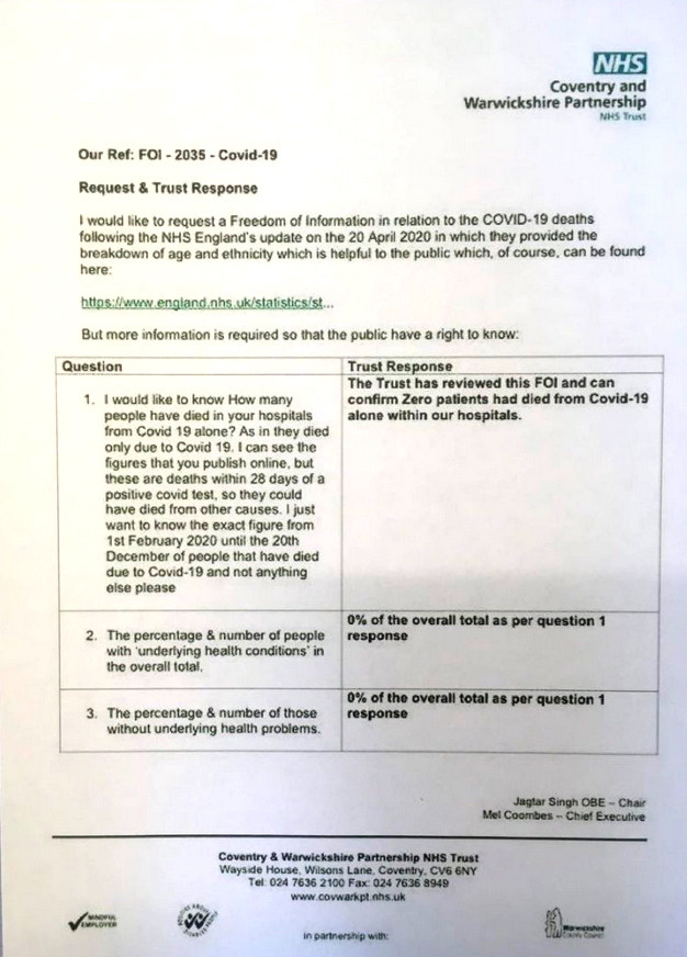 There’s been a campaign recently of FOIs pushing NHS trusts to officially declare the number of folk who DIED OF COVID.