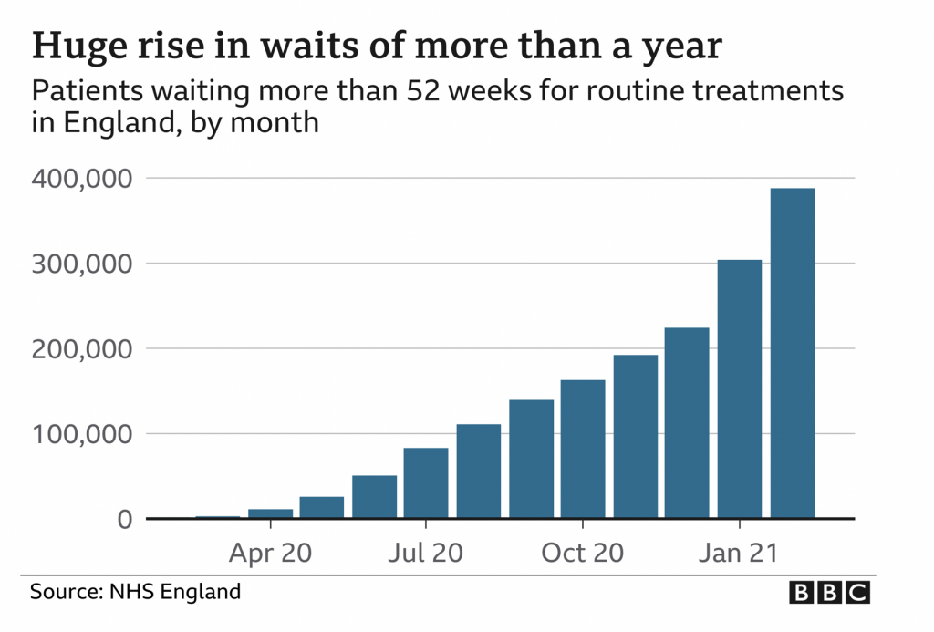 The BBC: It’s shocking so many people are waiting for hospital treatment due to the NHS focusing on COVID for an entire year.