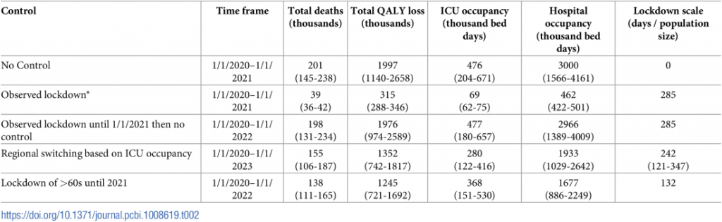Additionally, their estimates of 2 million QALY (quality adjusted life year) losses from an “uncontrolled outbreak” show how disproportionate the response has been. Sixty seven million people in the UK will have lost 1.25 years of their life to harsh restrictions between March 2020 and June 2021. That is 84 million quality years of life that we will not get back and a massive degradation of quality of life for many years to come, not just for the 67 million brits alive today but those yet to be born who will be paying the Covid debts.
