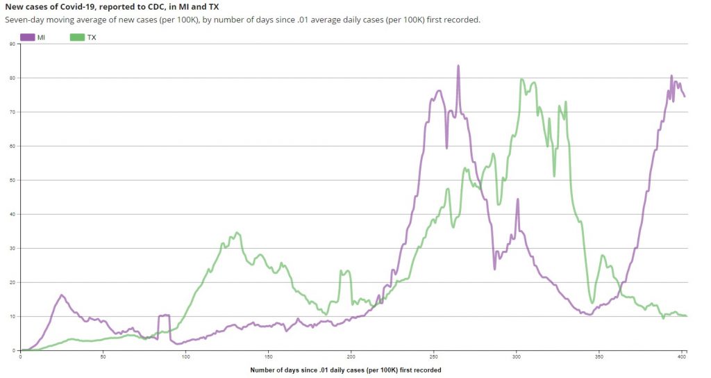 Even if Michiganders are ignoring the lockdown (and good for them if so), that doesn’t explain why restrictions must be maintained if removing them makes things no worse. There’s certainly no evidence Texans are voluntarily staying home very much at all.
