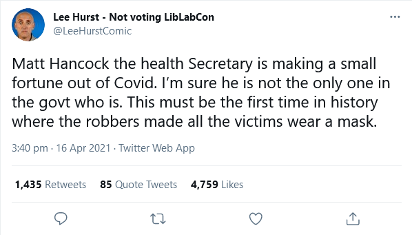 Yeah, and if that’s their official attitude, what kind of freedom is there amongst GPs to report potential adverse events? The jabs are totally safe, apparently – there can’t be any. This is the most worrying sentence I’ve read this week.