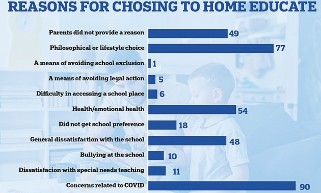 This represents an increase of some 38% from the year before – with parents citing “health concerns relating to Covid” as the main reason for keeping their children at home.