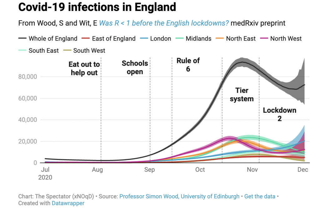 Before the second lockdown it was argued that the tier system was ineffective and that cases were surging. But the reconstructions suggest that fatal infections — and by implication Covid infections generally — were not surging. They were in decline having peaked earlier.