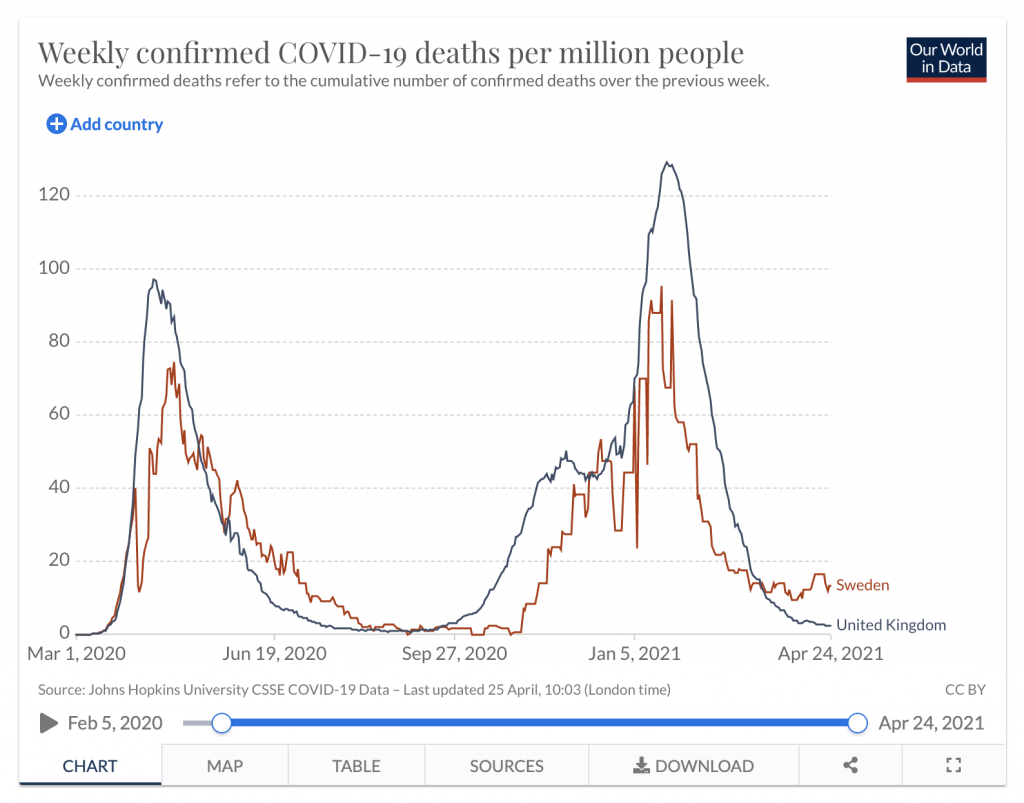 Stop Press: I got some of the data for the above argument from Phillip W. Magness’s excellent post for AIER in which he debunked the pro-lockdown conspiracy theory that the only reason Boris didn’t impose a ‘circuit breaker’ last autumn was because he fell under the spell of Sunetra Gupta, Carl Heneghan and Anders Tegnell.