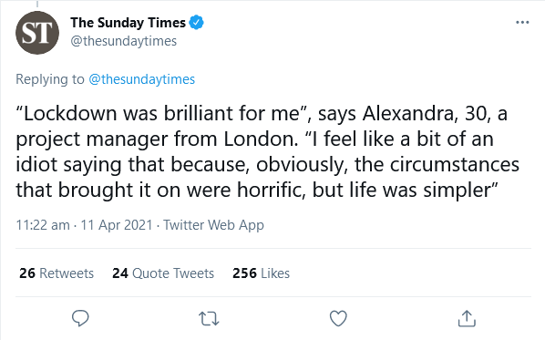 It’s quite scary to think there are actually people out there who are not only evnjoying every minute of this insanity but would be quite happy for this madness to carry on indefinitely – I’m convinced that there are some who would actually welcome curfews and even more restrictions than before … .