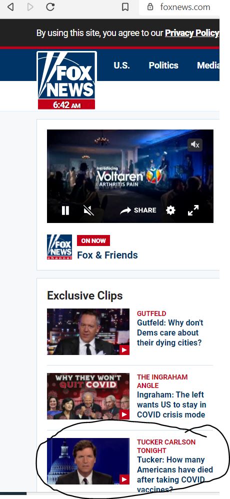 Nobody is putting too much faith in VAERS and that would appear to include Tucker Carlson.