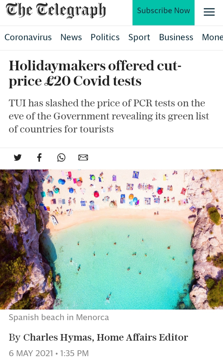 I’ve queried a couple of times recently why is it that if the Government is paying either £5.00 or £10.00 a time for its twice a week mass testing programme it allows the lucky members if its private testing Cartel to charge anywhere between £60.00 and £300.00 for travellers returning to the UK ?