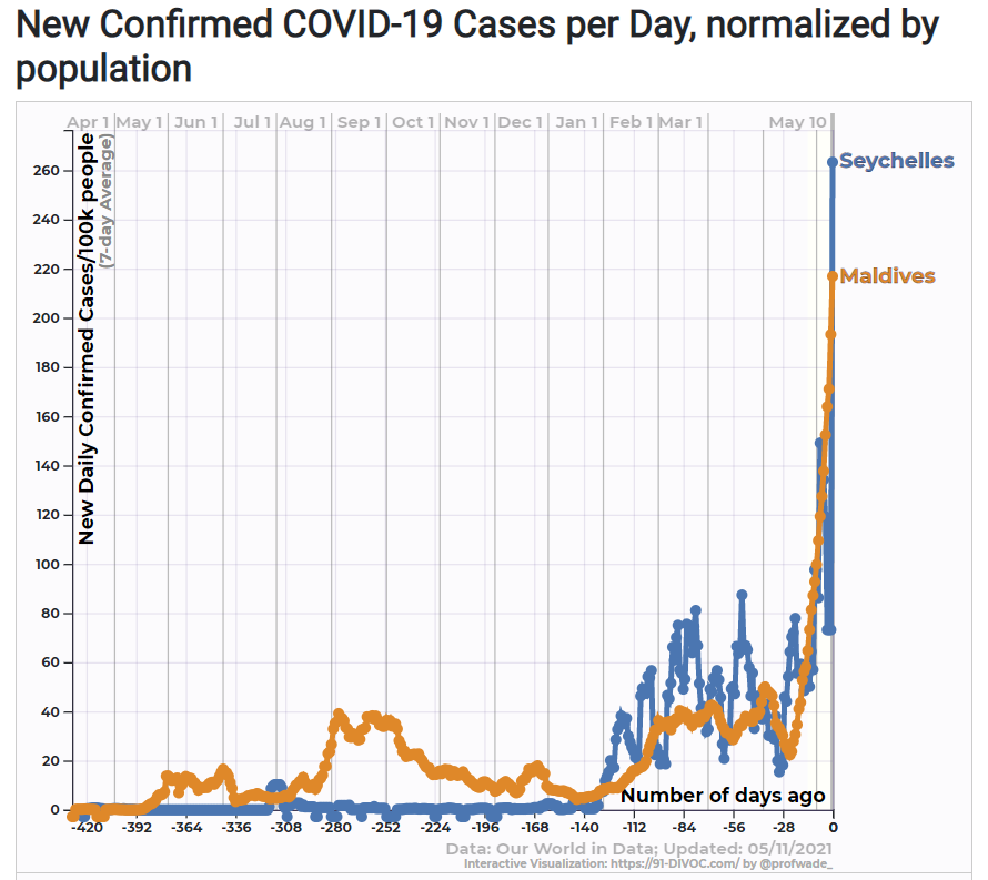 https://www.wsj.com/articles/seychelles-the-worlds-most-vaccinated-nation-sees-renewed-covid-19-surge-11620669853?mod=itp_wsj&yptr=yahoo “Seychelles, which has vaccinated a higher proportion of its population against coronavirus than any other country, is struggling to contain a new surge in Covid-19 infections, raising questions about the effectiveness of a Chinese shot the island nation has administered to the majority of its vaccinated residents. “The islands’ renewed infection surge comes as a shock after the government vaccinated more than 60% of the population. Some 38,000 of the population was given the shot from Chinese state-owned firm Sinopharm and the remainder received AstraZeneca shots produced at the Serum Institute of India …” Comment: If 38,000 of the vaccines were the “Chinese” vaccine … this still means that at least 22,000 of the vaccines (probably more) were the AstraZeneca (not the Chinese vaccine). So wouldn’t this “raise questions about the effectiveness” … of BOTH vaccines?” Also from article: According to the health ministry, more than one third of new active cases are people who are fully vaccinated.” Note: This is about the same percentage as people who have not been fully vaccinated. Lets parse the math … “More than 60 percent” of the people in this country are “fully vaccinated.” Restated this means that fewer than 40 percent of people in this country… Read more »