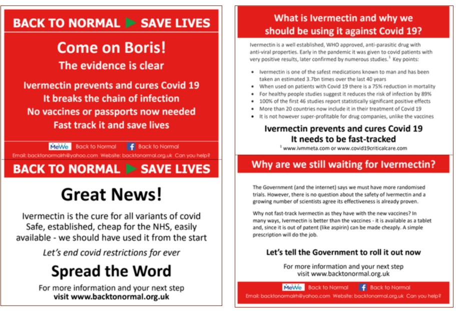 “Lockdown is over that ship has sailed ” At the grassroots style Back to Normal campaign, we have acknowledged this and have switched our campaign to backing Ivermectin. We are a deliberately “analogue” campaign in a digital world having distributed over 600,000 anti-lockdown postcards via an army of 600 or so volunteers. The cards go through letterboxes but increasingly, they are handed out at Stand in the Park events or marches.