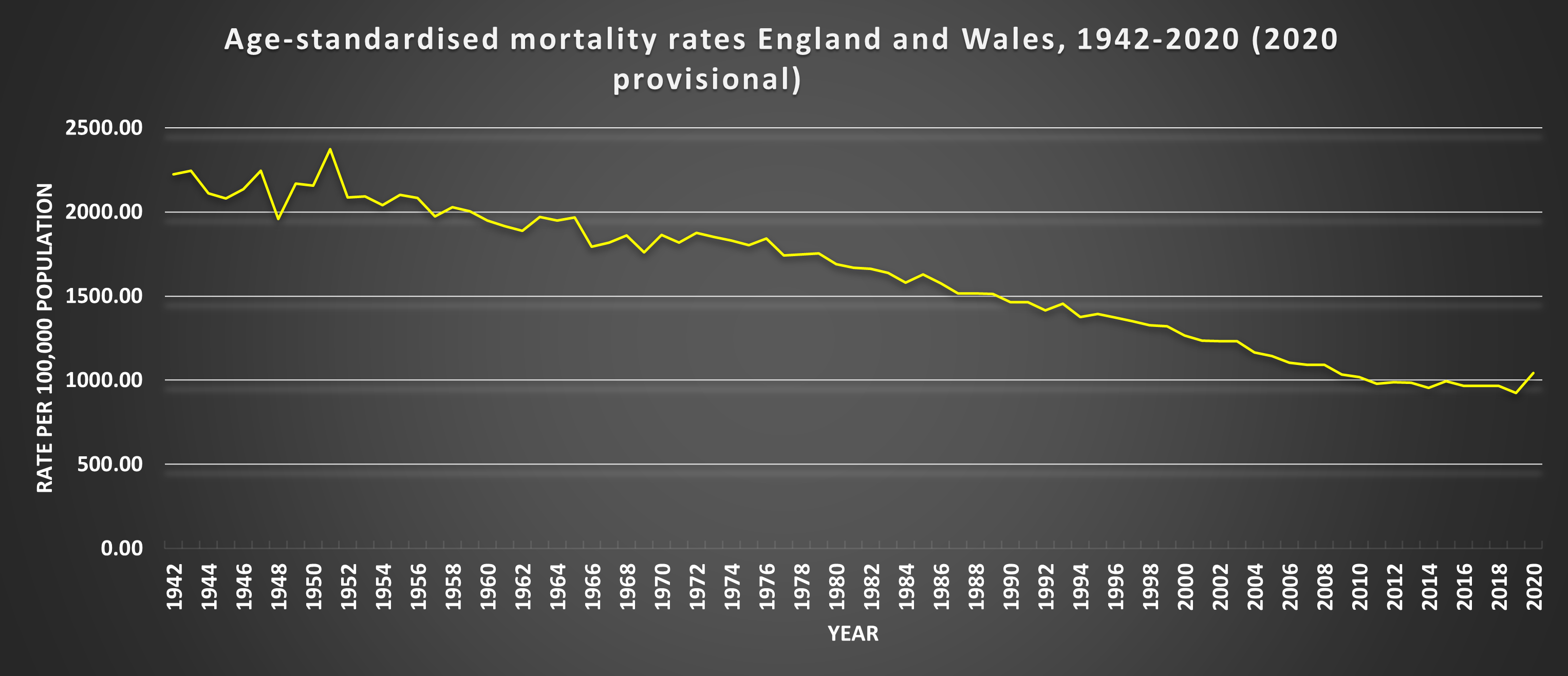 Very important to look at the figures in historical perspective. Here are the figures from 1942 to 2020 for England and Wales.