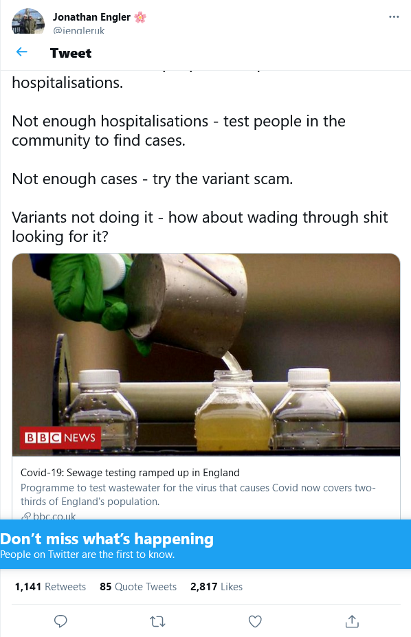 we know that but how do you convince everyone else? – every time I try I get shouted down with the “official BBC narrative” being trotted out – the brainwashing has been so complete that pushback at even the most basic level just isn’t effective.