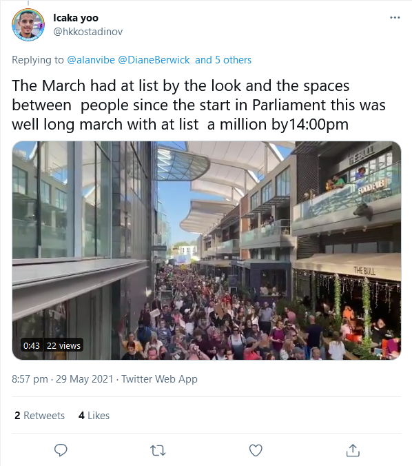 This clip neither claiming the protest to be nearer a million by 2pm today …