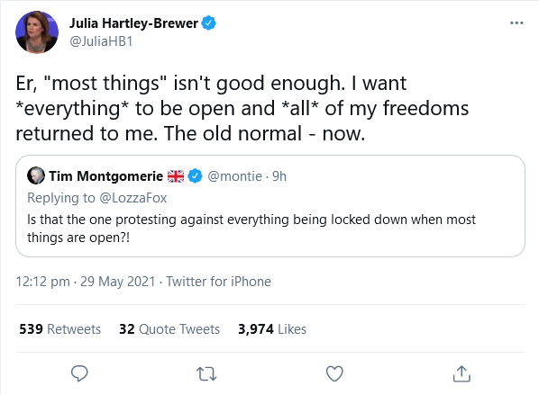 We were there too, but arrived late so we walked from the back forwards. My impression was that whilst it was diverse and in good spirits, there were fewer people than in April, maybe 10.000? I also think people were younger and a bit more fringy than in April. My most deep and lasting impression was that the general public doesn’t give a fig anymore. It was just a nuisance for most. Shopping was brisk and normal in Mayfair. Some young, masked, female Covidians even showed the finger to us. The public (erroneously if course) just thinks that the vaccines are vaccines, that they are effective, that they are safe, that taking them protects not just yourself but others (the opposite of masks, but they just adopted both narratives both ways, as the single masked joggers demonstrated it again to us) and that life will be back to normal once everyone had their shot. They don’t want to fathom yet that they could be wrong about that and that they will get multiple shots p.a. henceforth etc. . Maybe things will change then. They are also just fine with the looming discrimination if the unvaxxed and its apartheid. Their historical… Read more »