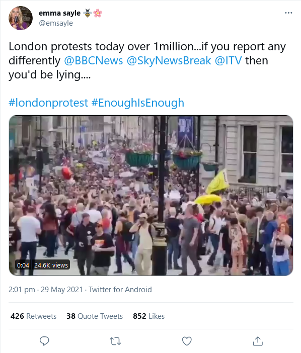 The media blackout of the protest today was shameful – the idea that the government narrative must never be challenged and any dissent must be censored and stamped out is a warning sign that Britain is sliding perilously close to totalitarianism.