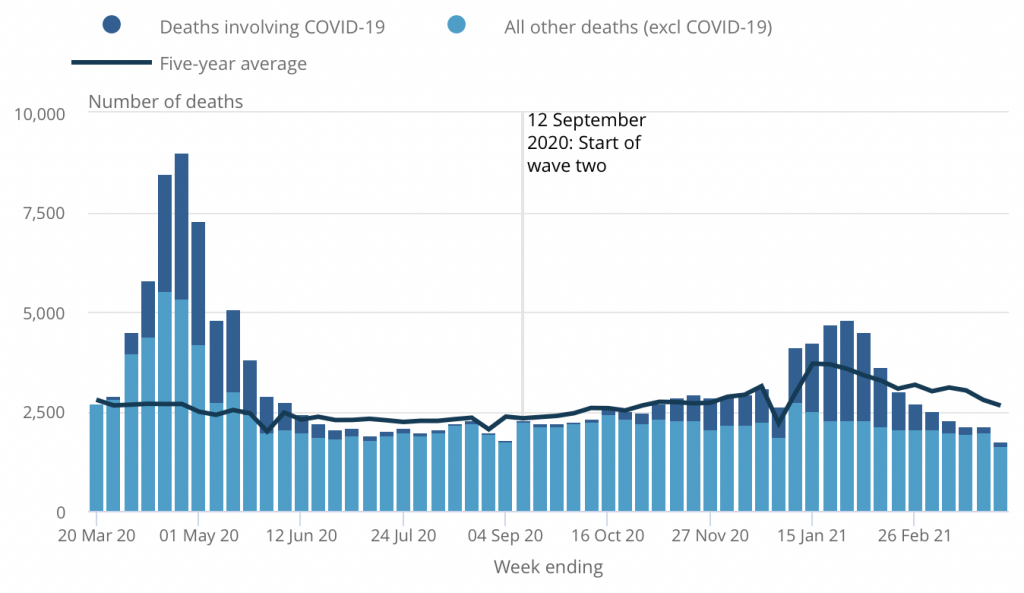 Contrary to popular understanding, Britain’s second wave of COVID-19 was less deadly than the first: although there were more deaths within 28 days of a positive test, age-adjusted excess mortality was lower.