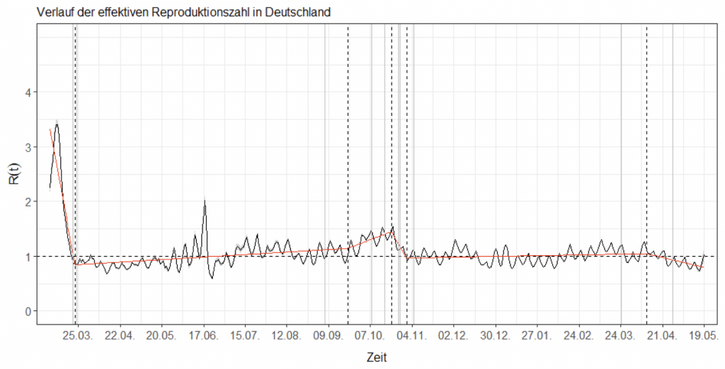 Hoyer and colleagues point out that changes in the R number don’t seem to be correlated with the timing of winter lockdowns either. They note, “there has been no direct connection with the measures taken since September – neither with the lockdown light on November 2nd and the tightening on December 16, 2020, still with the ‘Federal Emergency Brake’, which was decided at the end of April 2021”.